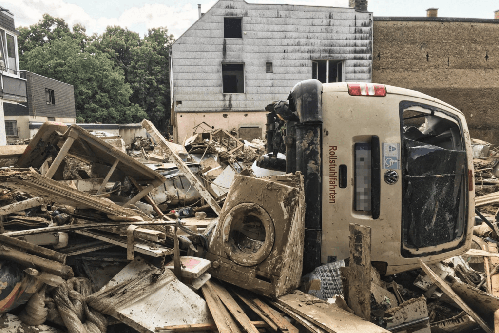 Was geschehen ist, darüber wurde in verschiedenen Medien bereits ausführlich berichtet. Die Fakten deshalb in aller Kürze: Vom 14. auf den 15. Juli 2021 überrollte als Folge eines lokal stehenden Starkregenereignisses (bis 250 l/m²) eine Sturzflut das Ahrtal. Die Ahr, ein eigentlich unscheinbarer Fluss, im Volumen zwischen Appelbach und Nahe gelegen, erreichte binnen weniger Stunden einen Hochwasserpegel von bis zu 700 cm Höhe (Quelle: SWR Aktuell). Die beschleunigten Wassermassen rissen Bäume und Fahrzeuge mit sich, zerstörten Straßen, Brücken und Häuser. Viele Menschen verloren in der Flut ihr Leben.